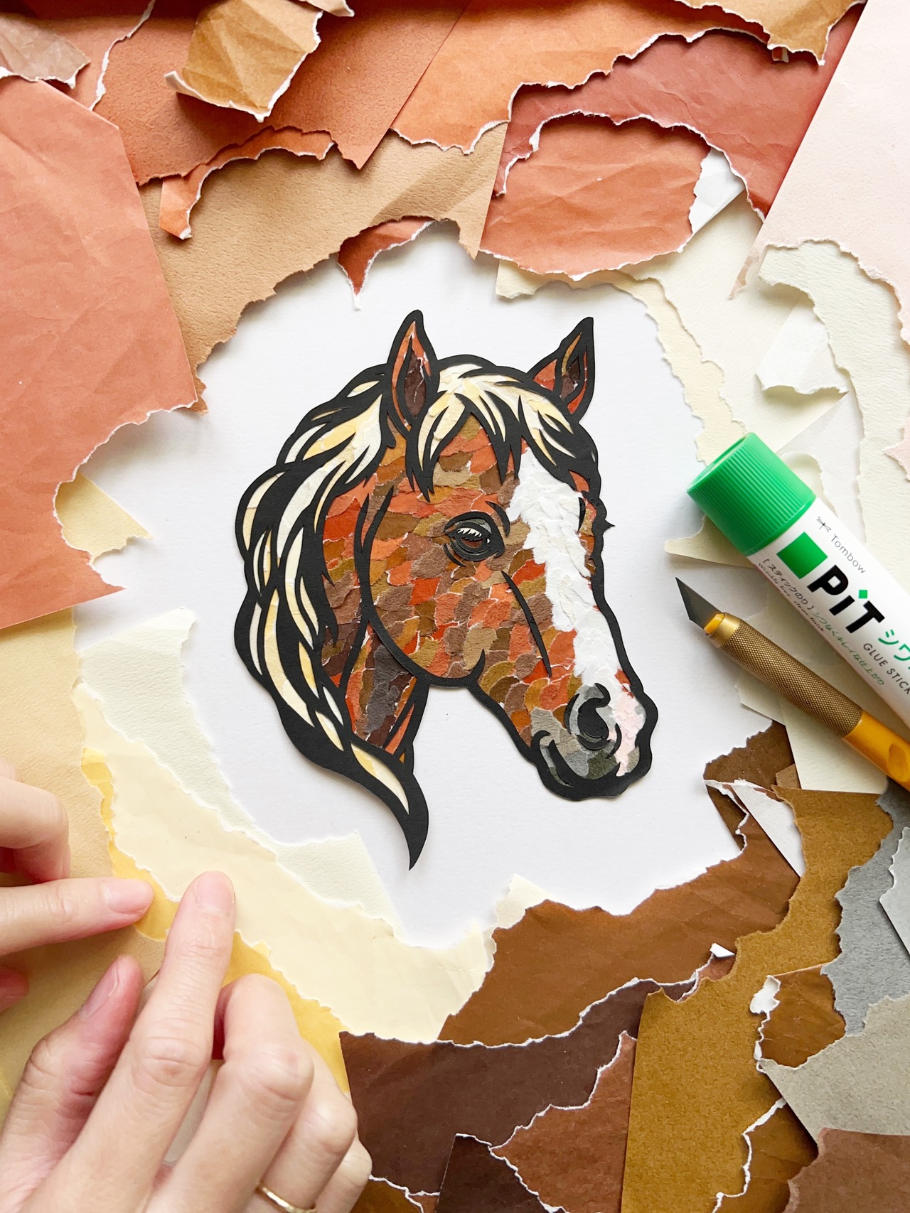【ちぎり絵×切り絵】原画アート 『horse(馬)』