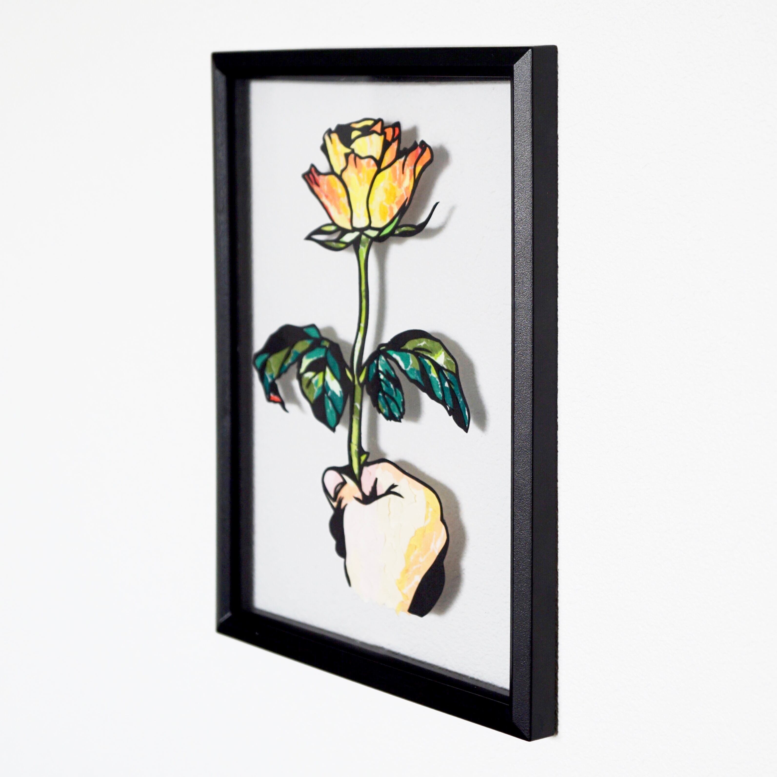 紙だけで描かれた一輪のバラは、繊細で儚げな美しさを持っています。