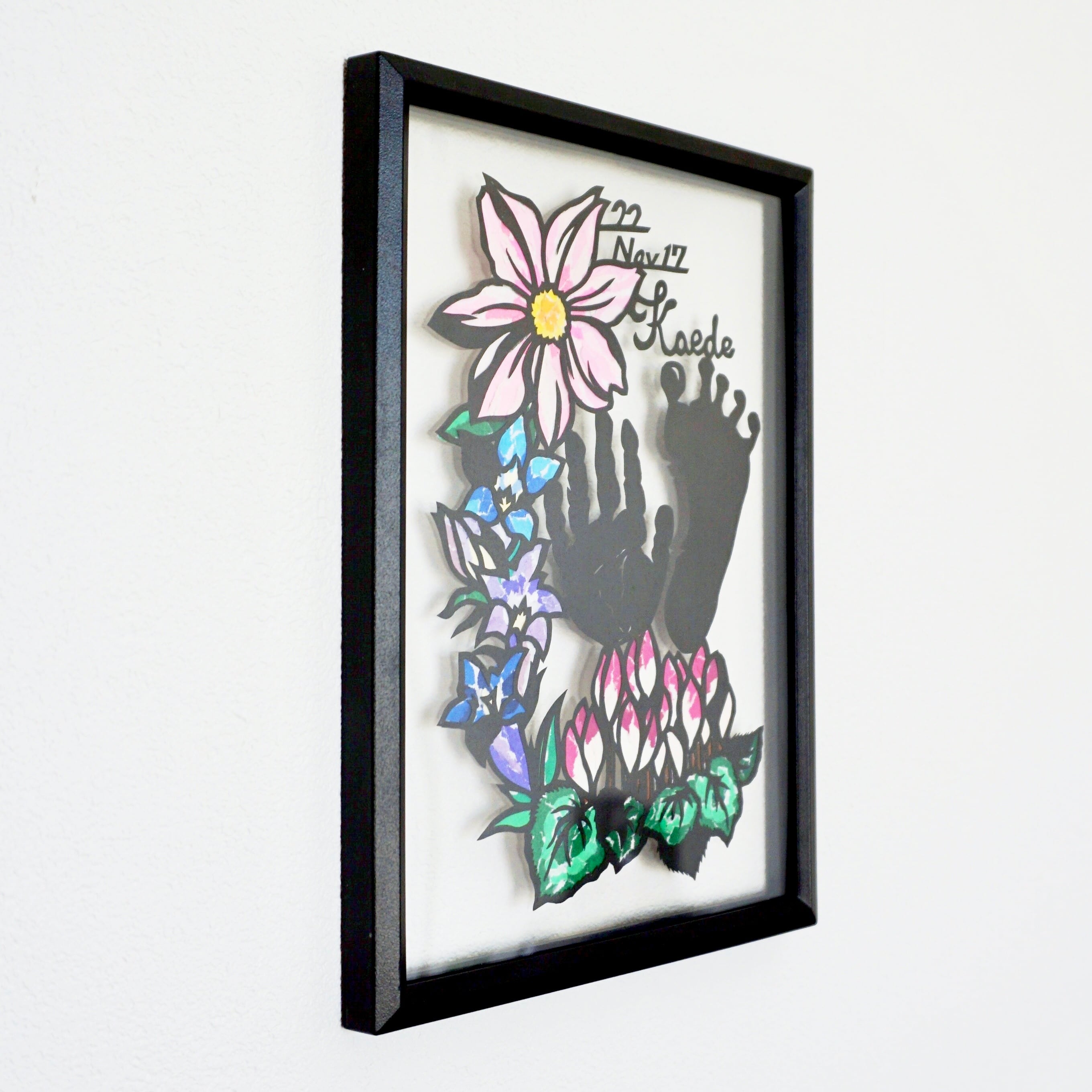 赤ちゃんの手形をモチーフにしたアートがセットになっています。