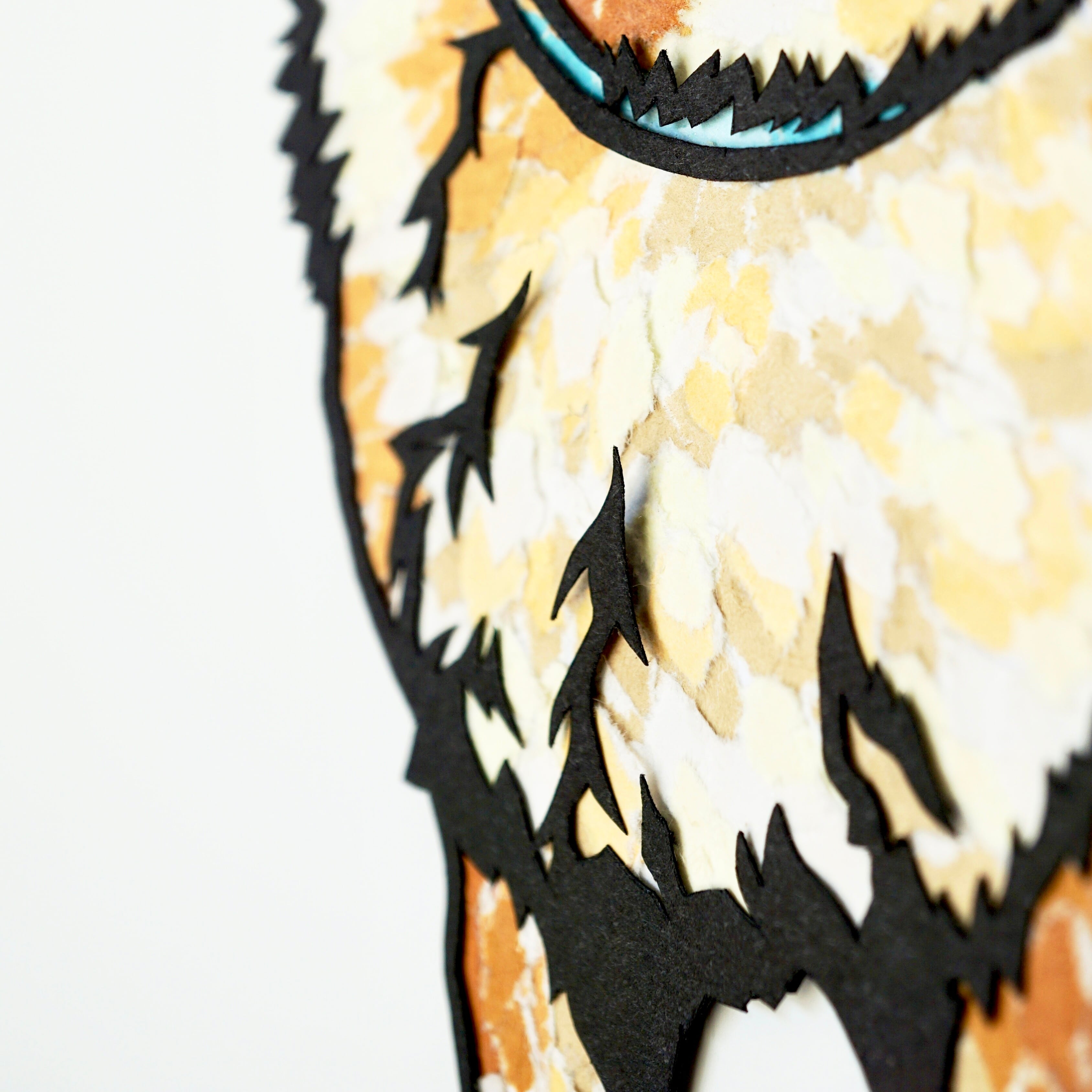 ちぎり絵の不規則さと色彩で【命】を吹き込む。