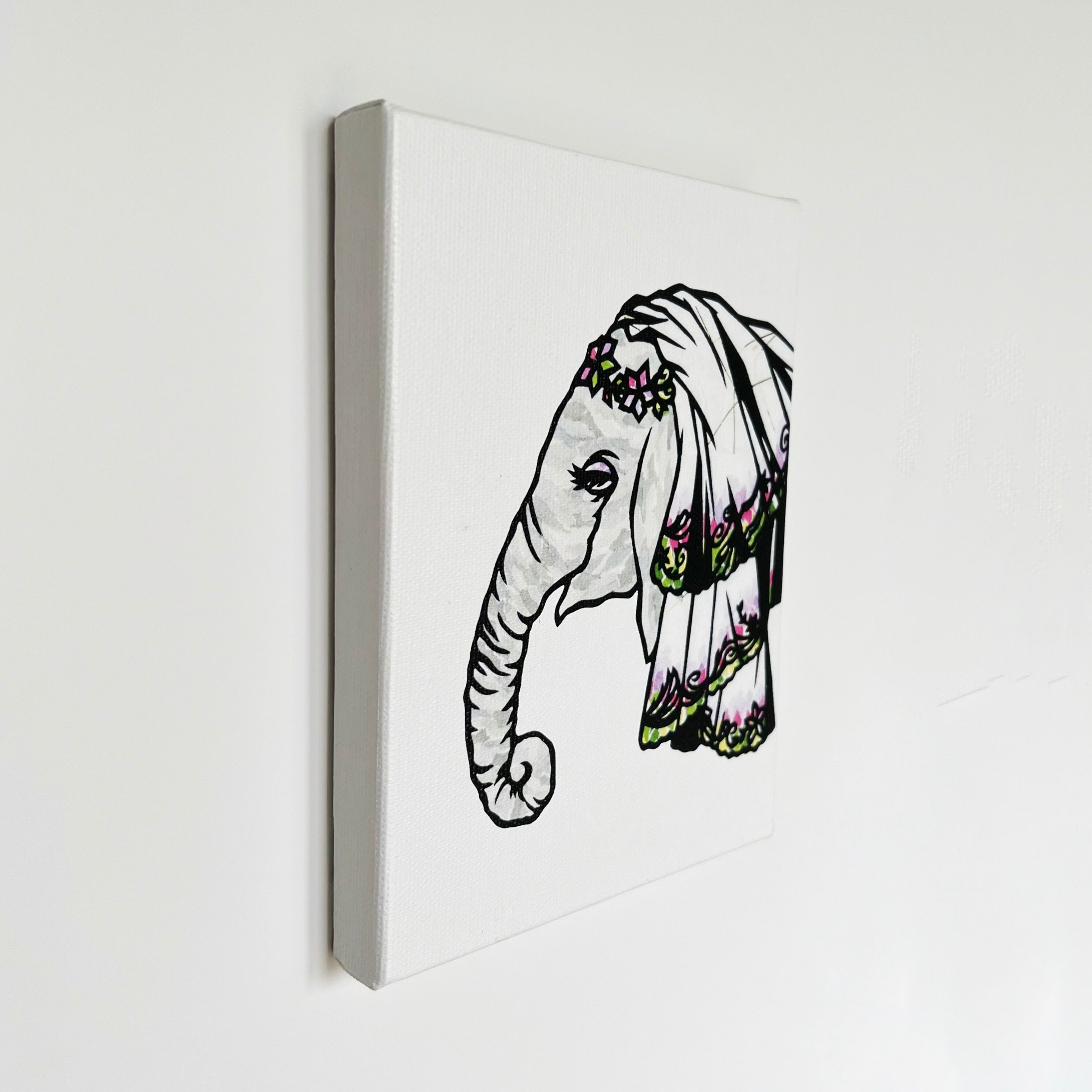 ベールを付けたゾウが、幸せなウェディングシーンを演出します