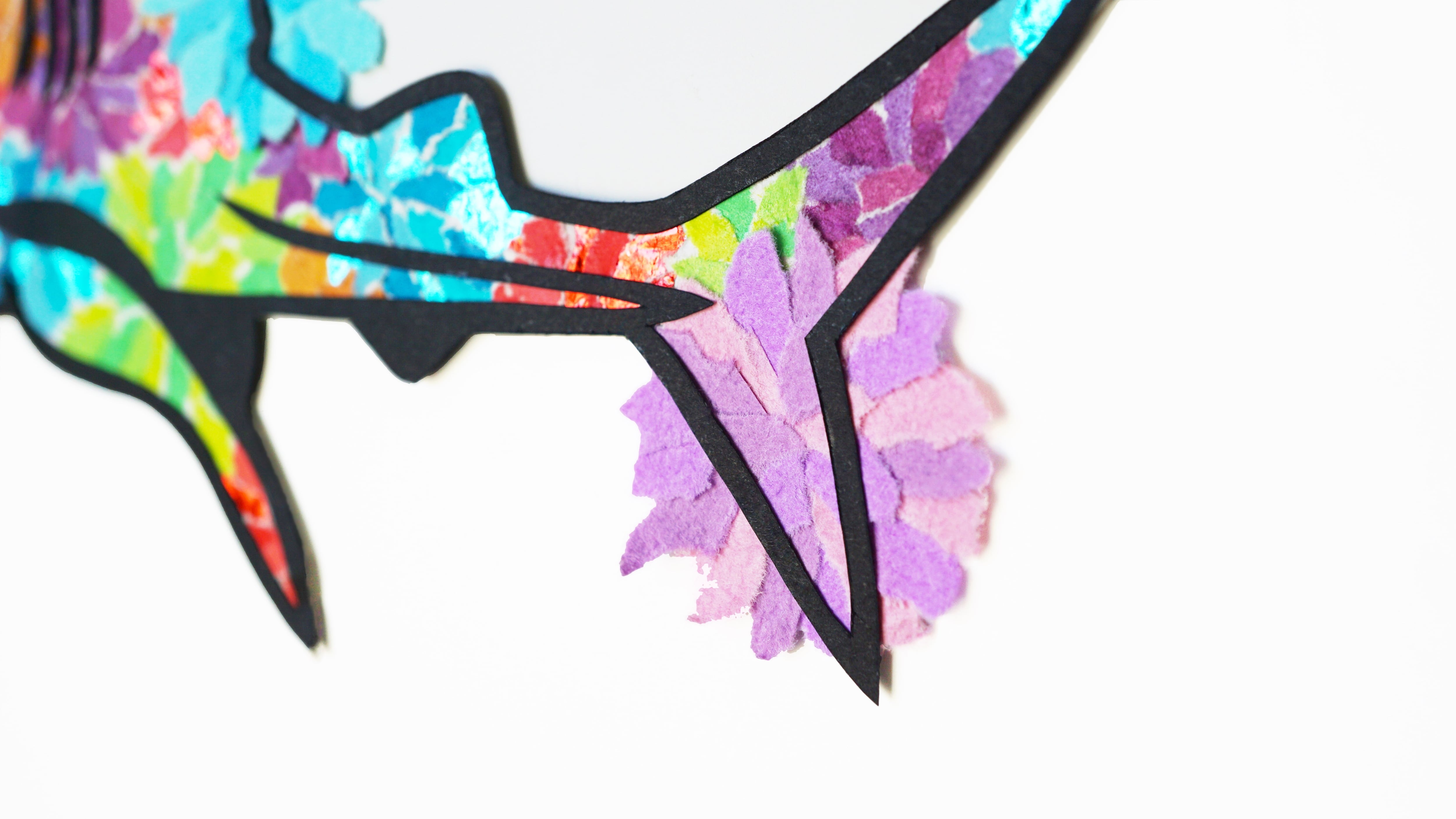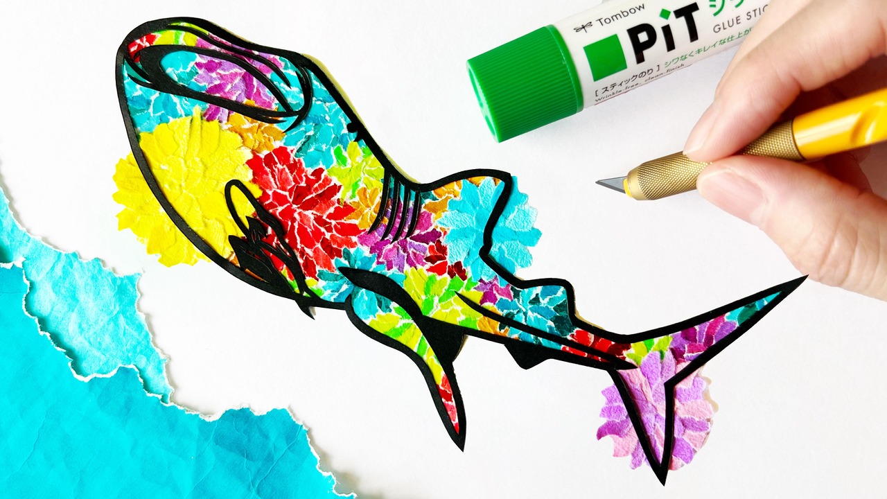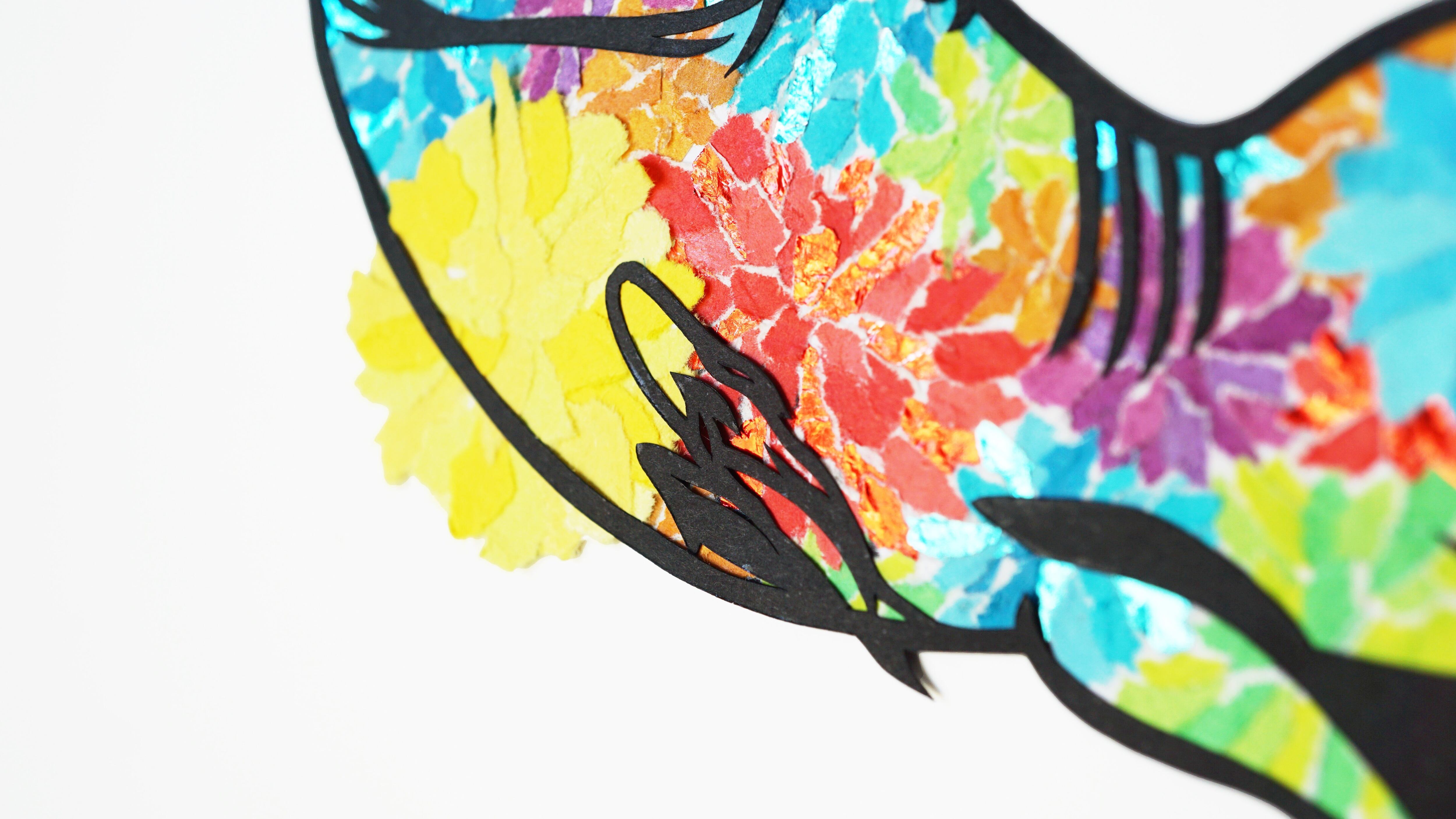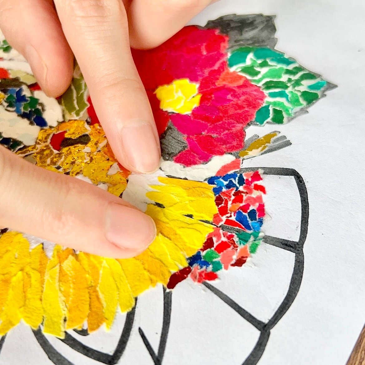 一枚一枚丁寧に手作業で描き【切り絵とちぎり絵】を合わせた作品は、