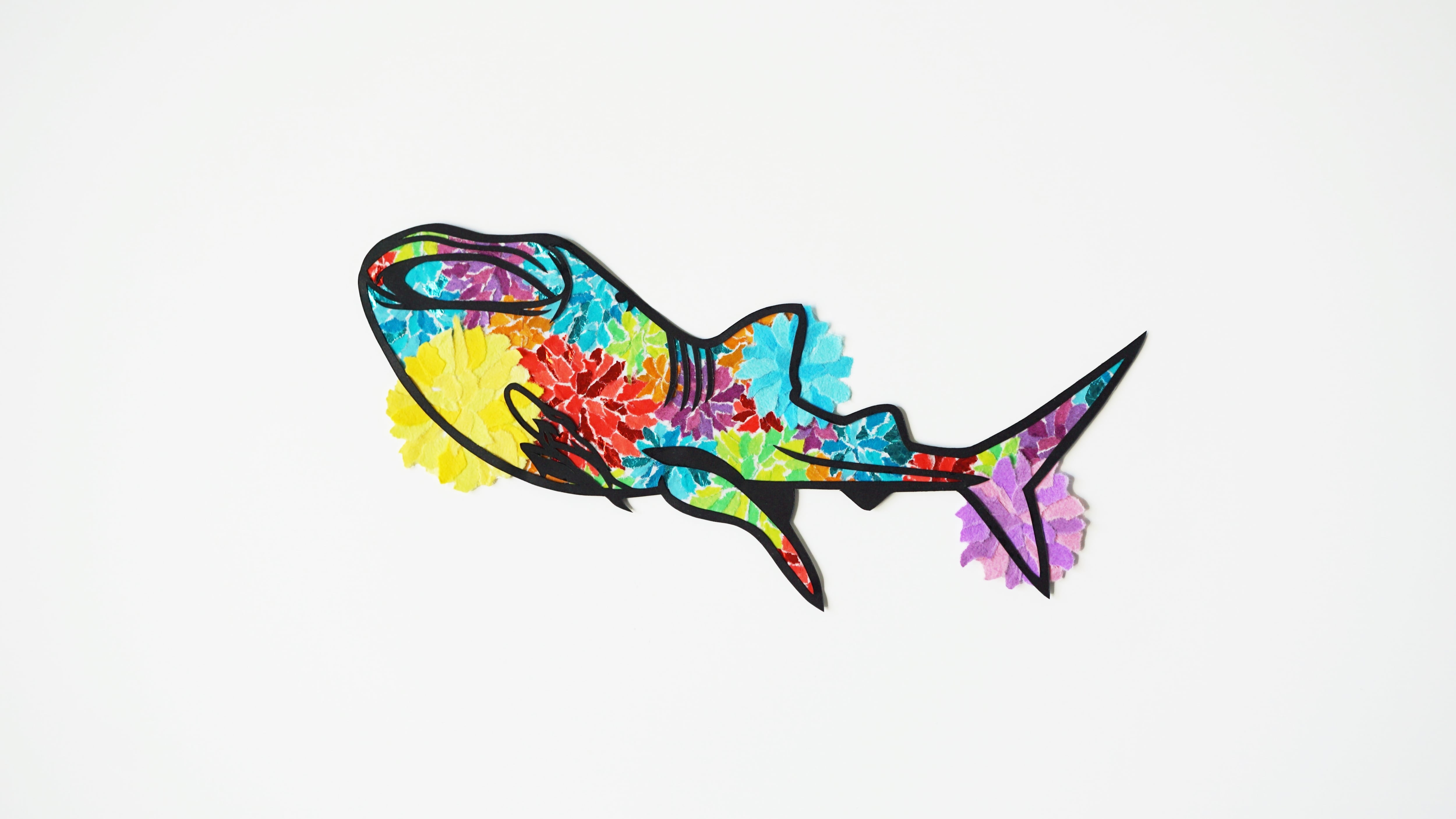 鮮やかな色使いが魅力の受注生産アート『flora -ジンベイザメ-』。